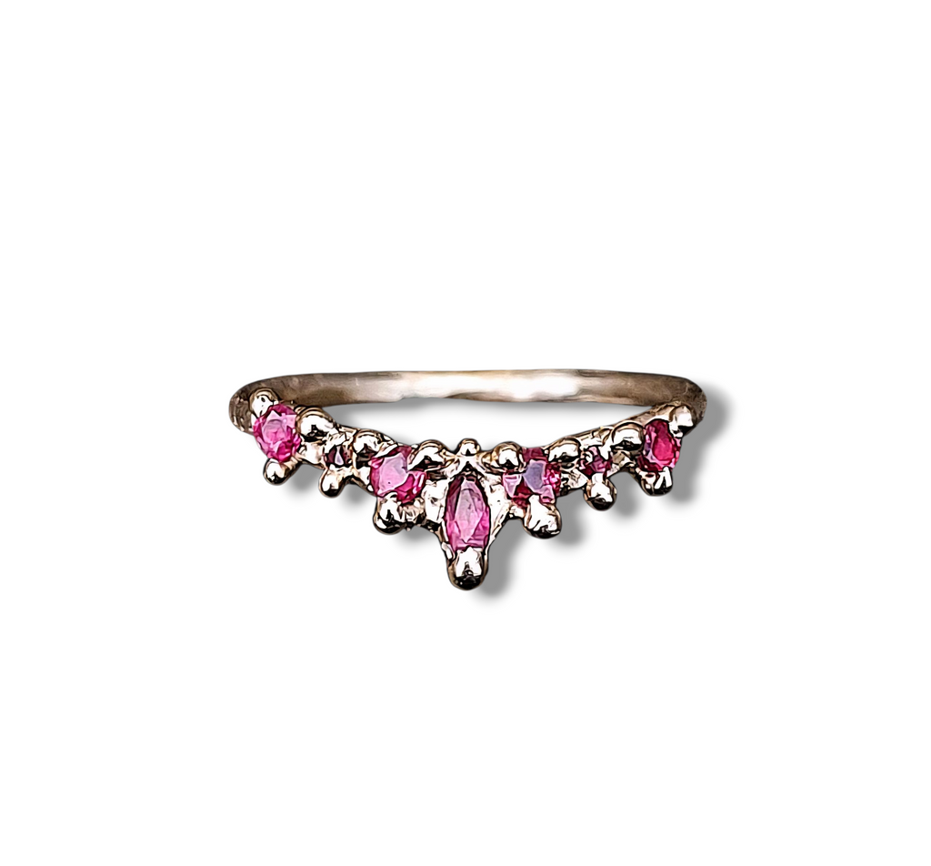 Heart Crown- Solid gold and pink sapphire wishbone ring
